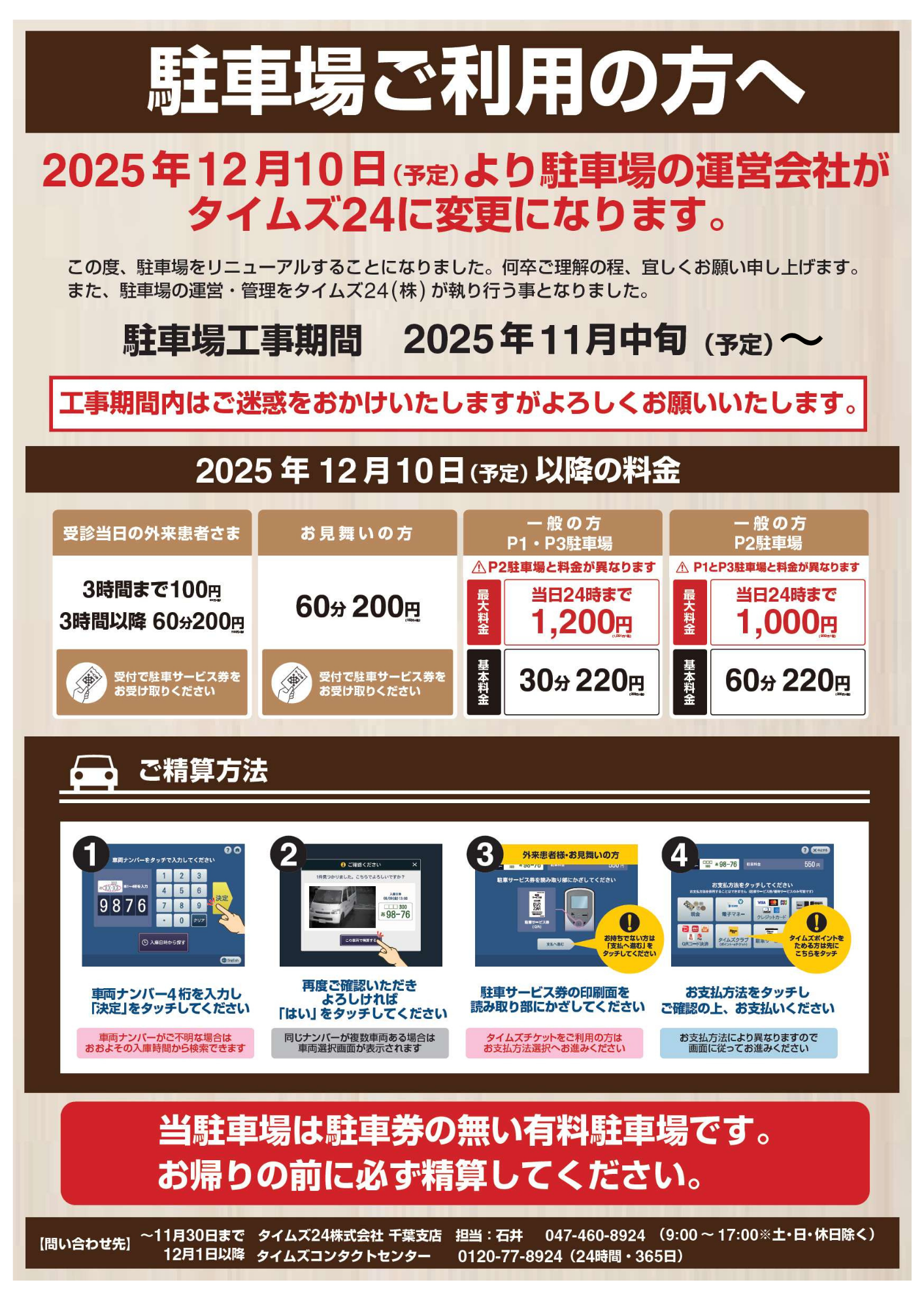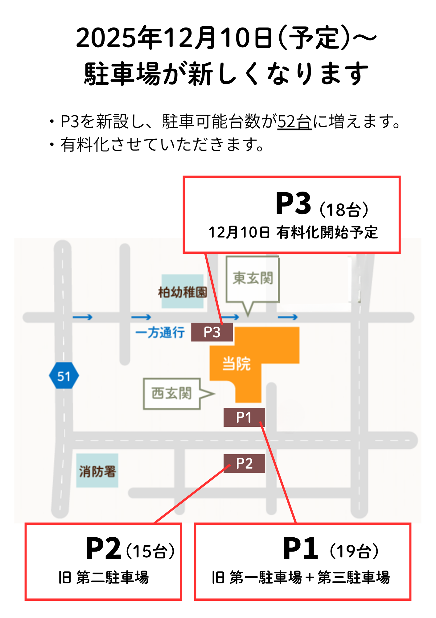 2025年12月10日(予定)より、駐車場をリニューアルオープンします。