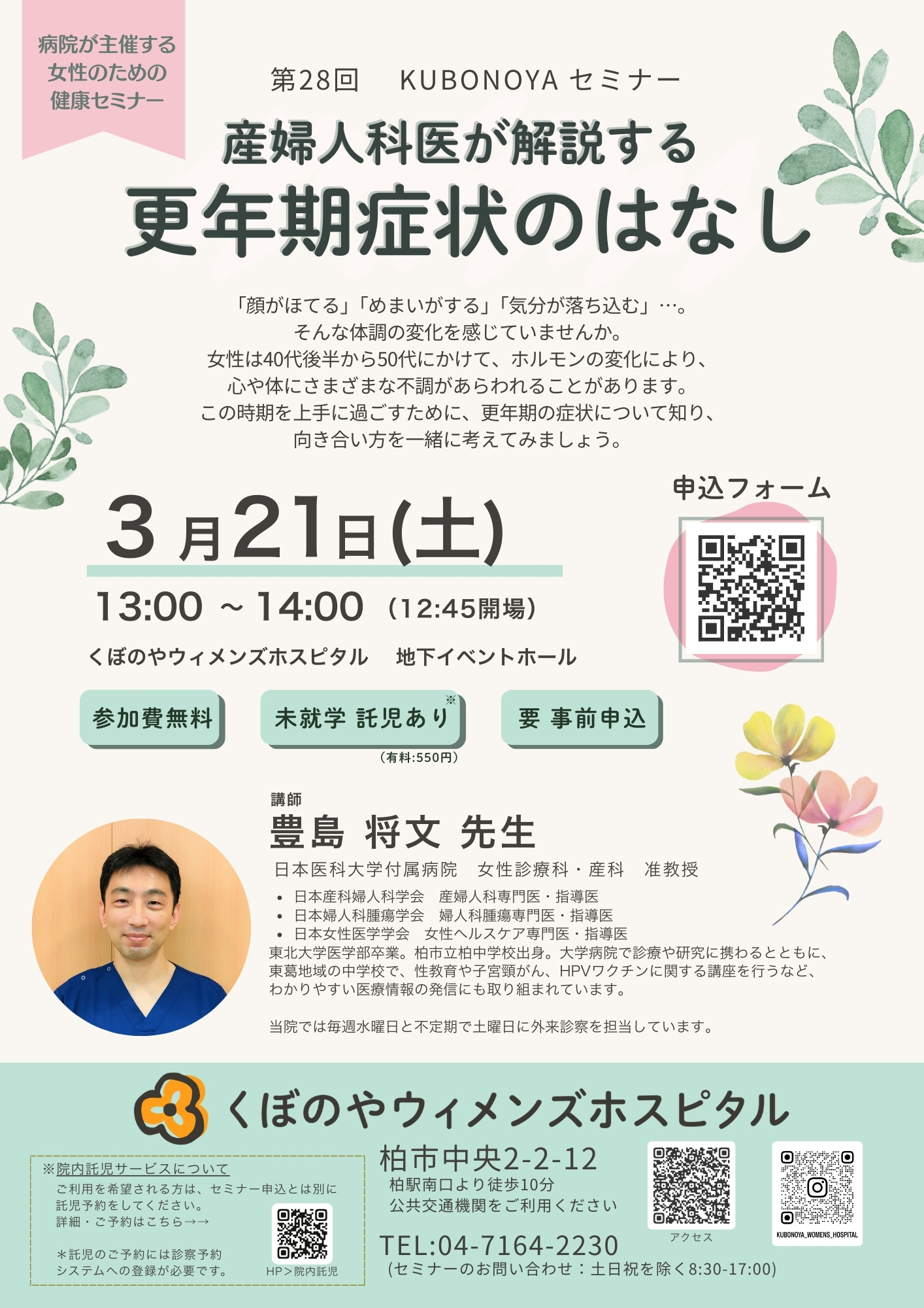 女性のための健康セミナーのご案内 3/21